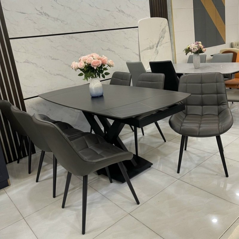 Bàn ăn thông minh mặt đá phiến kéo dài kèm ghế Loft Caro