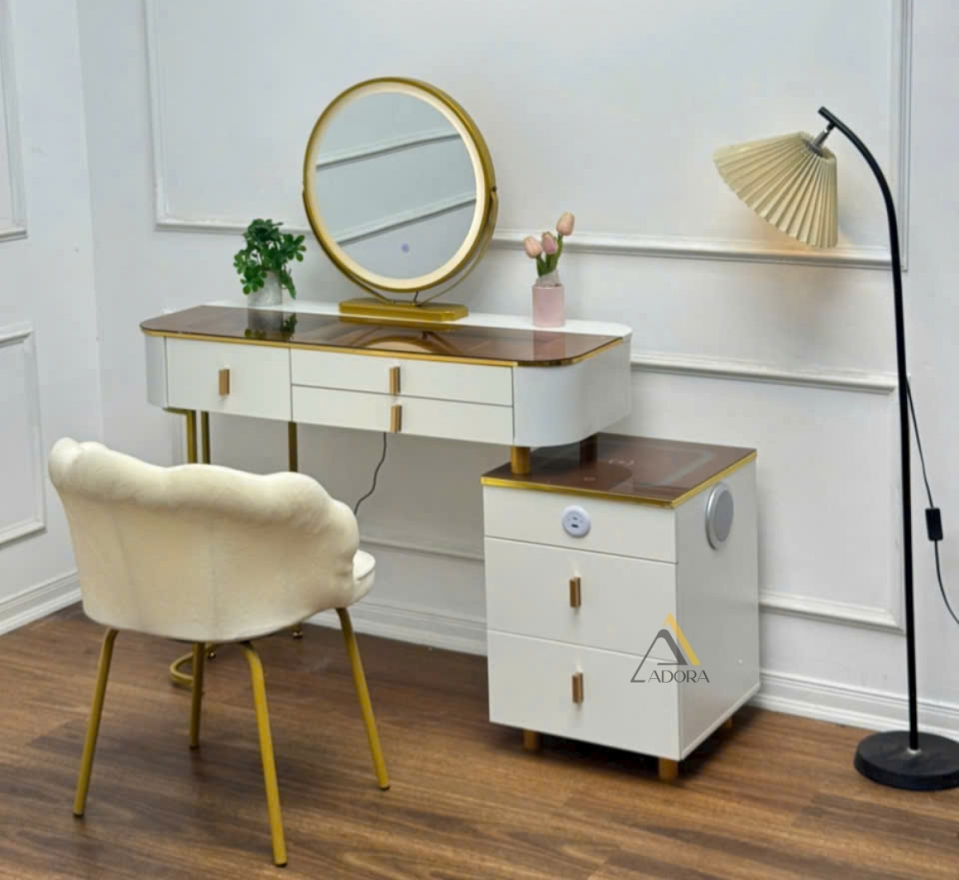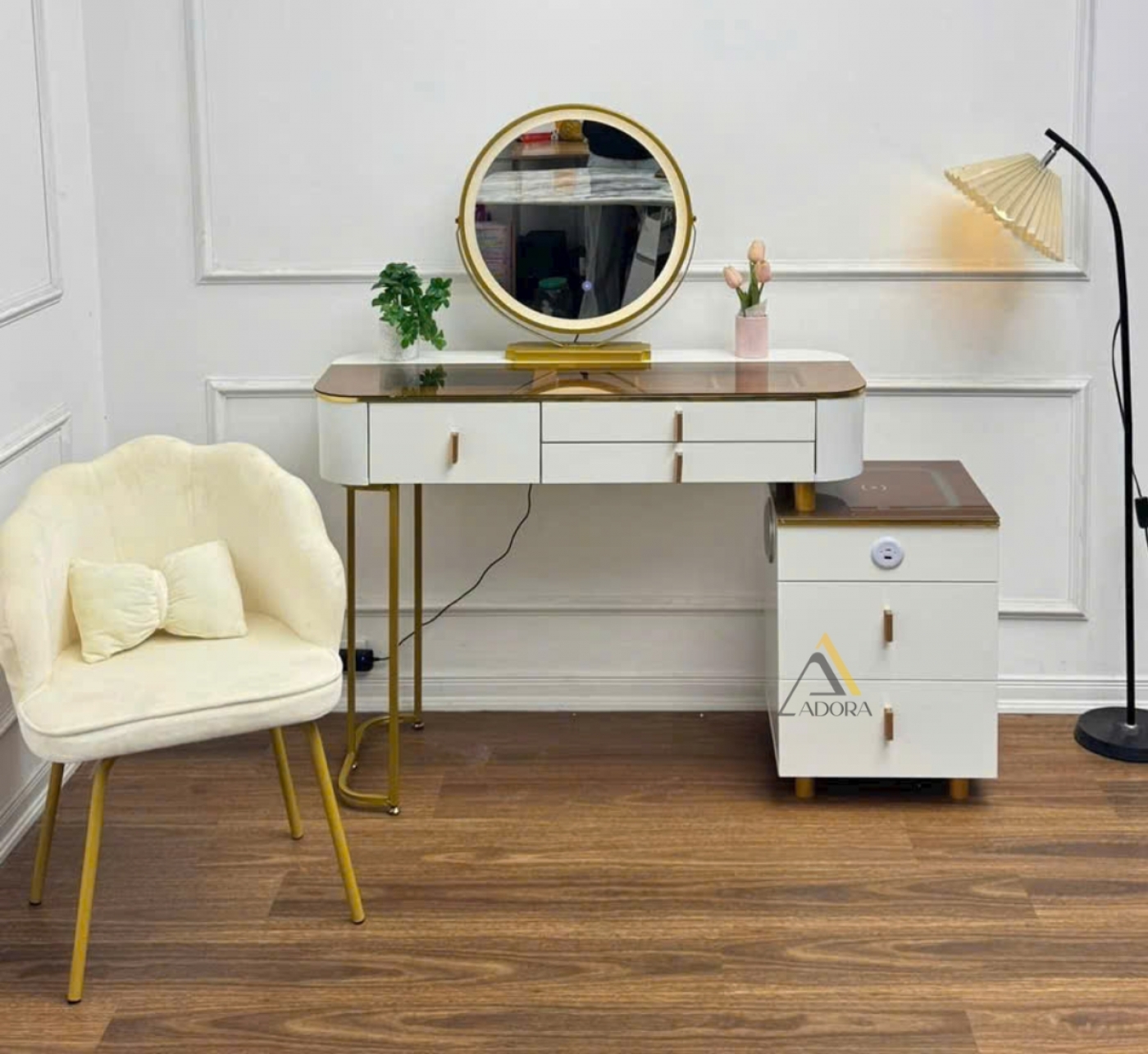 Sản Phẩm Bao Gồm: Bàn, Gương tròn, Ghế hoàng tộc