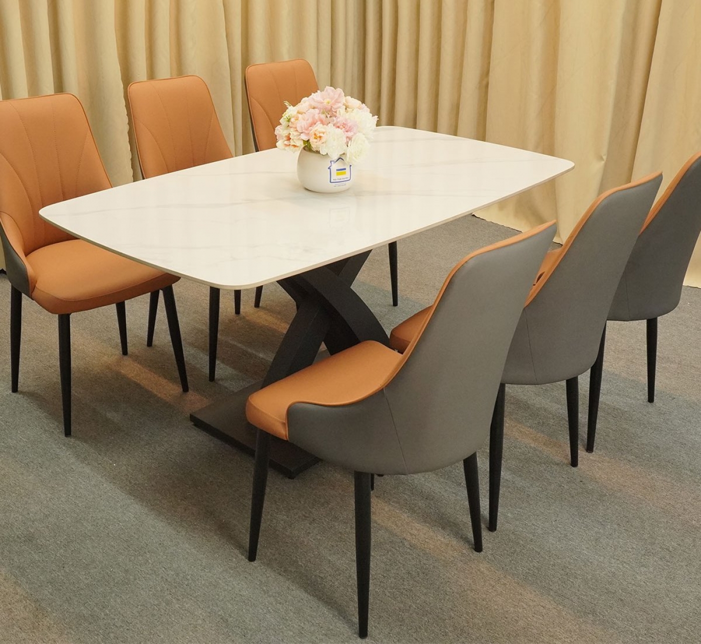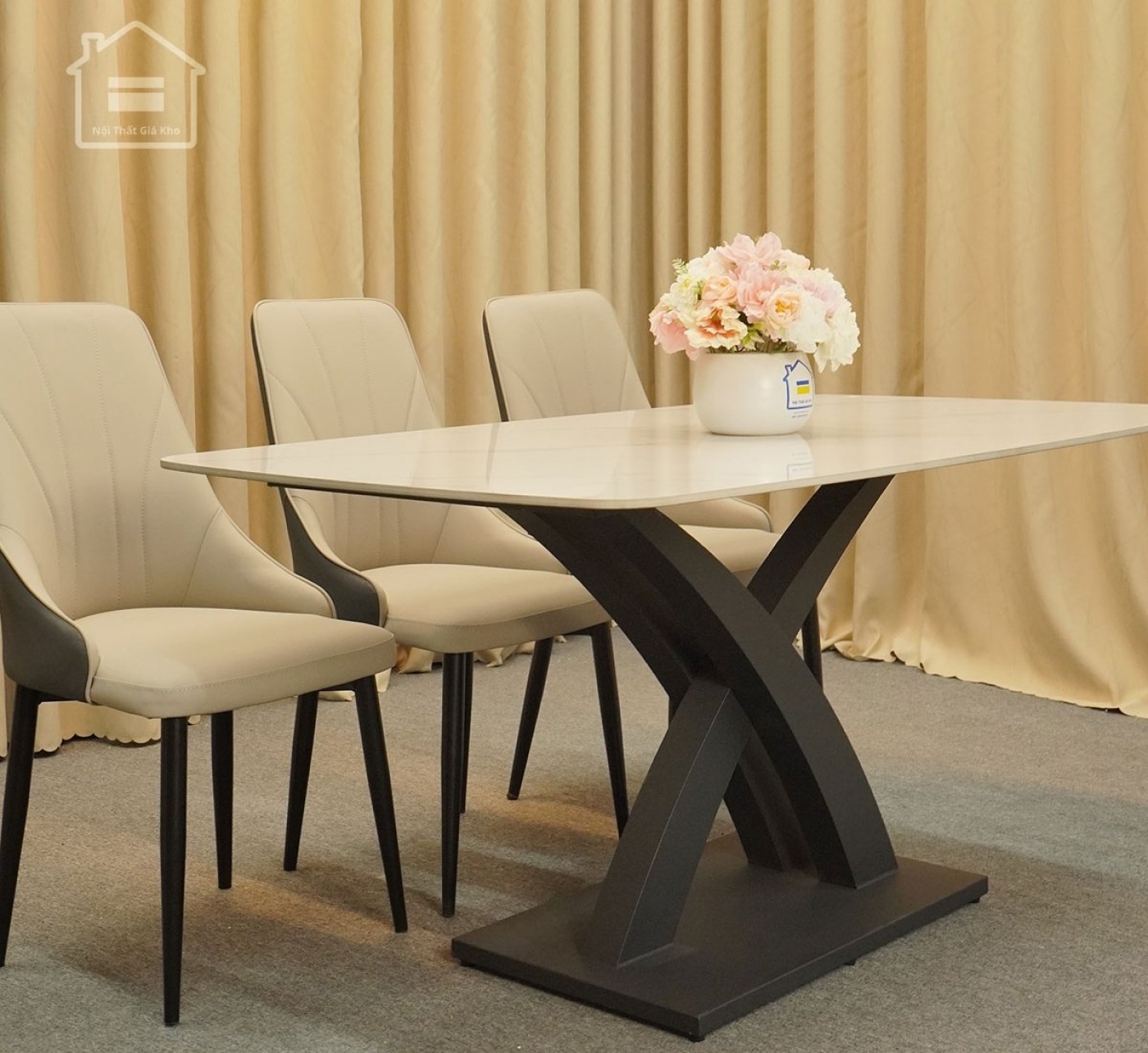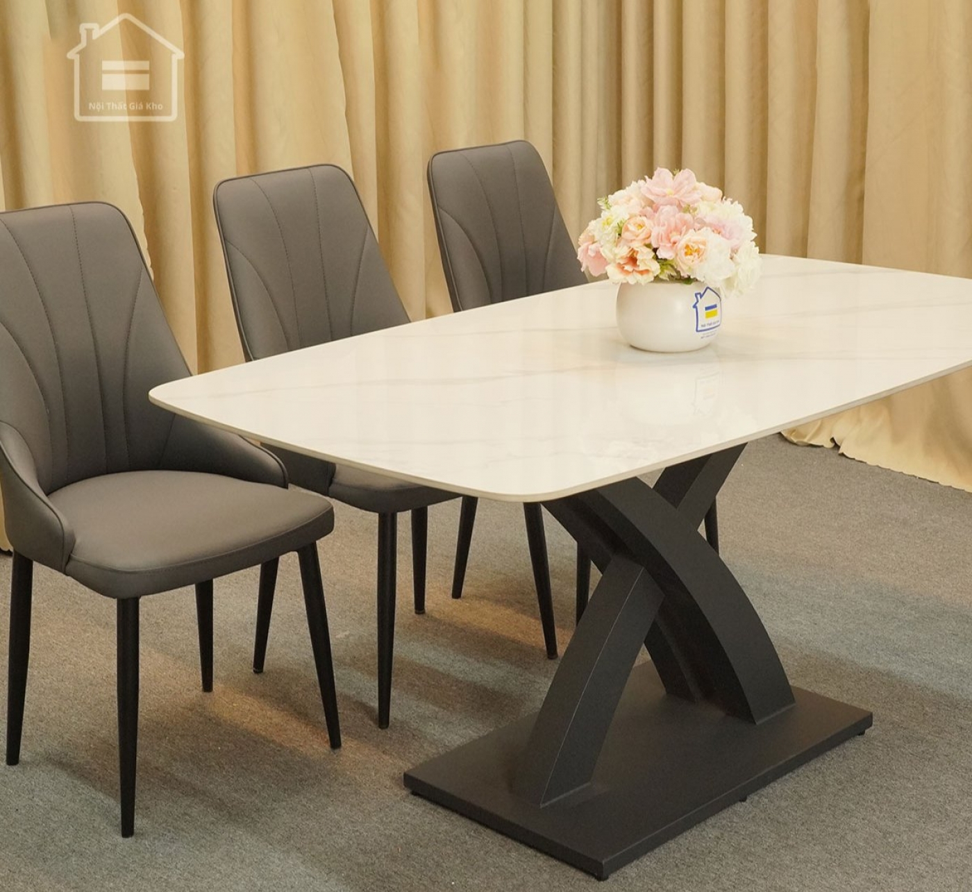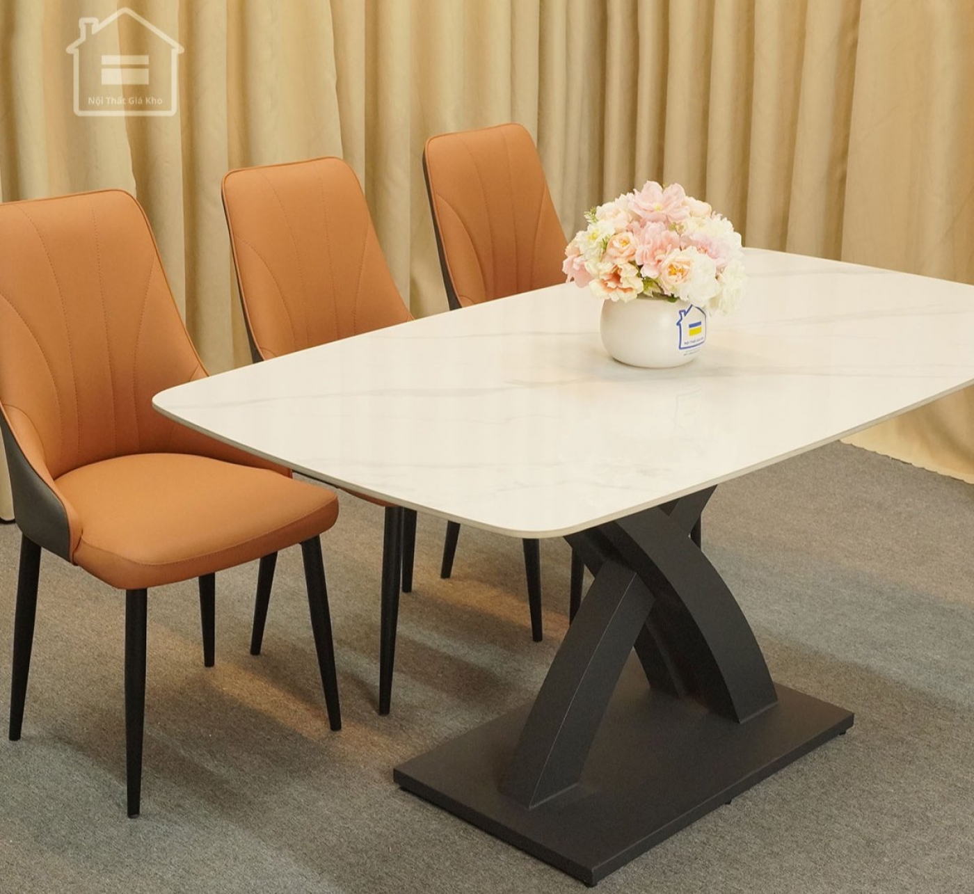Bộ bàn ăn 4 ghế Adora Pamper là lựa chọn lý tưởng cho phòng ăn từ 10–16 m². Thiết kế tinh tế, hiện đại, phù hợp với phong cách sống của gia đình Việt, mang đến sự gọn gàng nhưng vẫn ấm cúng. Với bộ sản phẩm này, Nội Thất Giá Kho hướng đến khách hàng trong độ tuổi 30–60, cần sự tiện nghi, chất lượng nhưng vẫn đảm bảo tính thẩm mỹ. Bàn ăn mặt đá ceramic bóng chân X cong là một trong những mẫu bàn ăn bán chạy nhất tại Nội Thất Giá Kho với thiết kế hiện đại phù hợp với mọi không gian phòng ăn.