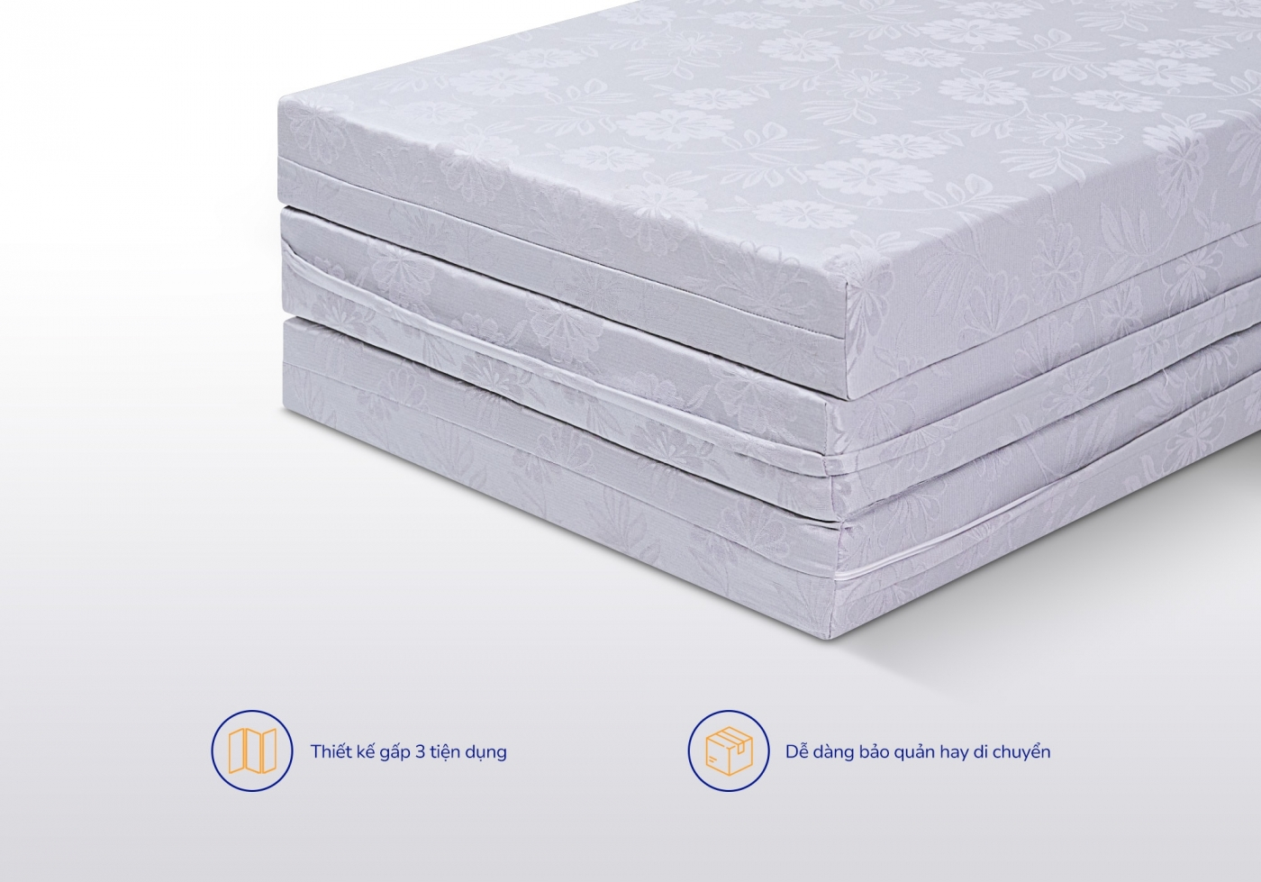 Thiết kế tiện lợi: Nệm được thiết kế gấp 3 mảnh, thuận tiện cho việc di chuyển và vệ sinh.