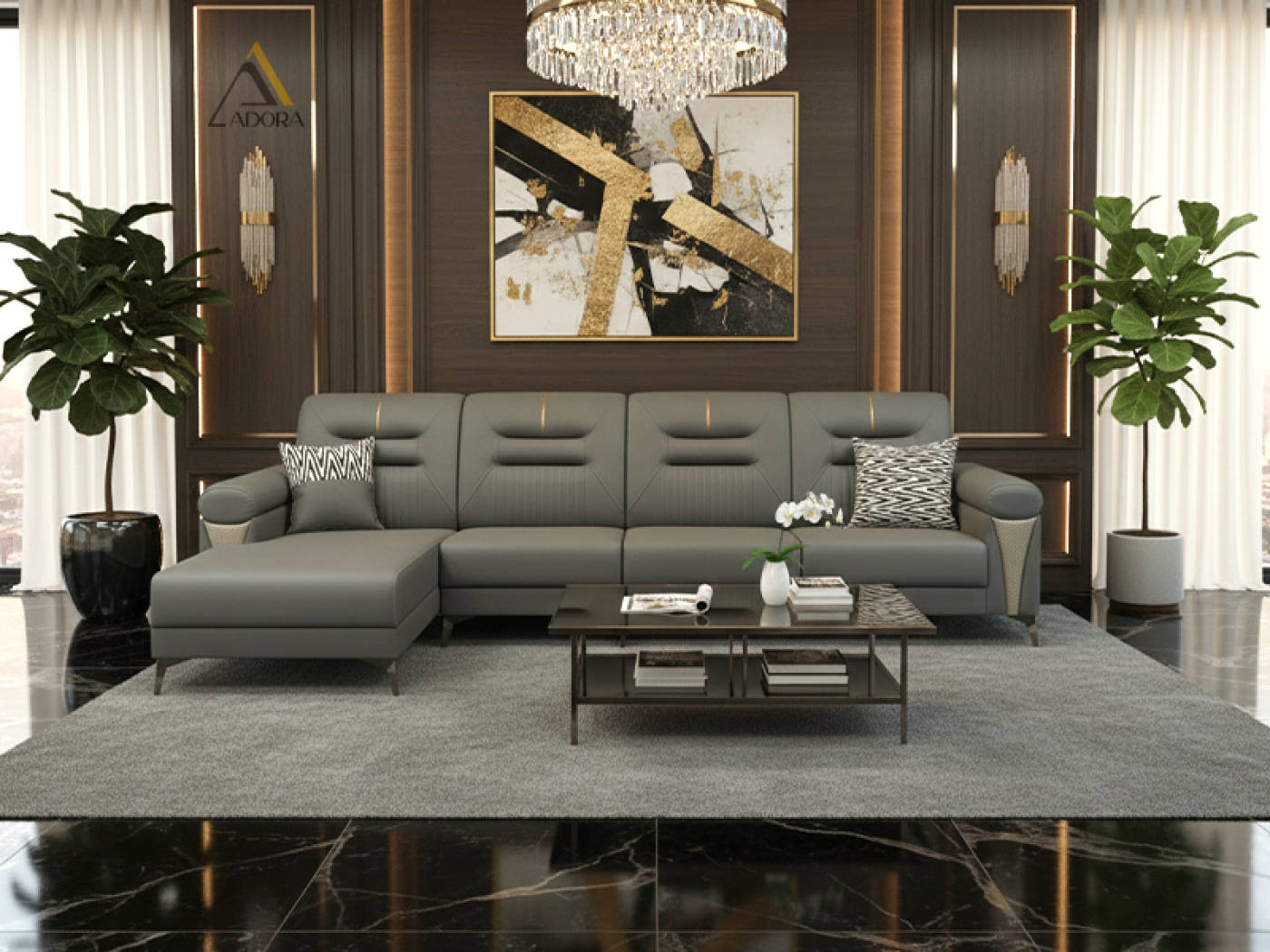 Sofa Góc L Adora Lora được hoàn thiện bằng vật liệu cao cấp để đảm bảo vẻ đẹp và tuổi thọ vượt trội:
