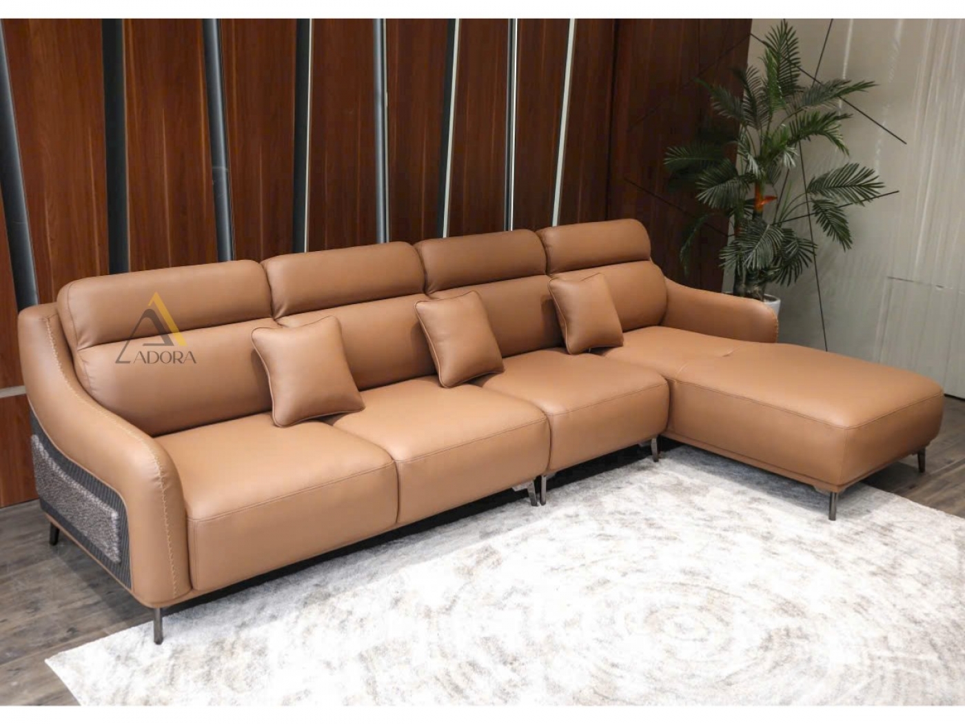 Sản phẩm sofa góc L Adora hiện đại tổng hợp nhiều chức năng tiện dụng cho người dùng. Ngoài chức năng của bộ ghế sofa da phòng khách dùng để đón tiếp khách cơ bản cũng như trang trí không gian căn hộ cao cấp của bạn thì nó còn có thể thư giãn như một chiếc giường ngủ êm ái dễ chịu hơn nữa với sự sắp xếp của sofa góc tùy ý của bạn. Đối với những căn hộ cao cấp sofa da giúp tăng vẻ đẹp sang trọng lên đáng kể.